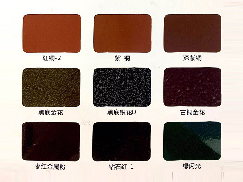 塑粉色卡是我公司主要生產(chǎn)的產(chǎn)品之一。產(chǎn)品具有**的流平性、附著力強(qiáng)、耐高溫、高光澤、美術(shù)立體感強(qiáng)等特點。主要產(chǎn)品有純聚酯型、純環(huán)氧型、混合型、金屬型、美術(shù)型等系列的高光、啞光、無光、磨砂、錘紋、大理石紋、仿銅系列、仿金屬漆系列等三十多個類型上千個色別的粉末涂料。