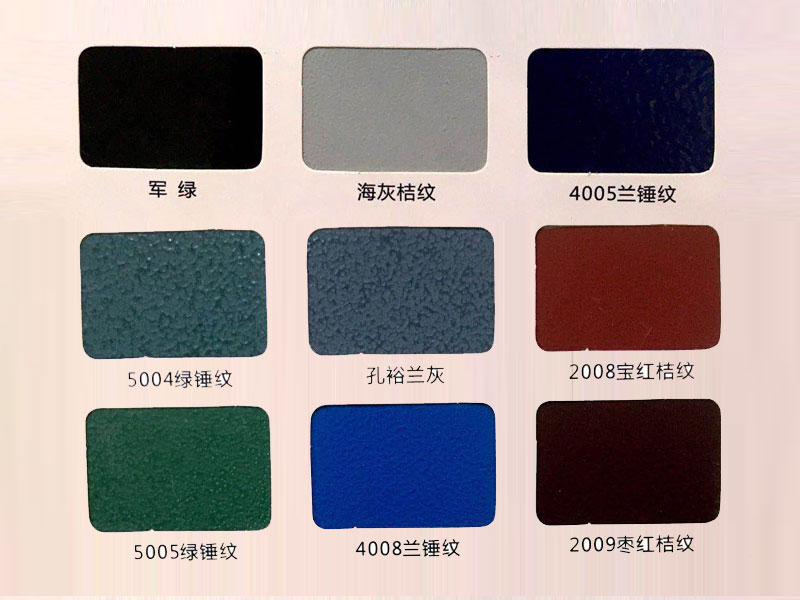塑粉色卡是我公司主要生產(chǎn)的產(chǎn)品之一。產(chǎn)品具有**的流平性、附著力強、耐高溫、高光澤、美術(shù)立體感強等特點。主要產(chǎn)品有純聚酯型、純環(huán)氧型、混合型、金屬型、美術(shù)型等系列的高光、啞光、無光、磨砂、錘紋、大理石紋、仿銅系列、仿金屬漆系列等三十多個類型上千個色別的粉末涂料。